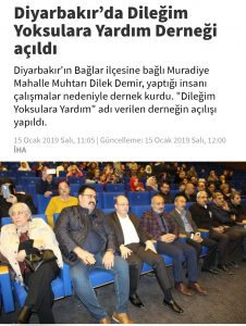 Karşıma çıkan haberler tatmin ediciydi. İlk haber, bu yılın başında açılan ” dileğim yoksullara yardım derneği” oldu. Diyarbakır’ın sivil toplum ve belediye destekli bir derneti bu..