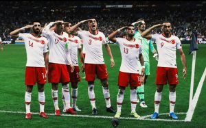 Maçın sonunda ise üzülen Fransa’yı ve hazımsız Fransız rejisinin çirkinliklerine şahit olduk. Zaten bu Fransa,tarihin hiç bir döneminde sevememiştir. Her halde dans’ı yasaklamamızın acısını halâ çekiyorlar 🙂 Futbolcularımızın golden sonra ki Asker selamı da batmış olacak ki, o anın görüntüsünün bir karesini bile yayına vermediler. E maç bitti bizimkiler tekrar selâm verdi türübüne,onu da kestiler. Hayır noluyo kesince anlamıyorum ki? Orada ki 35 bin taraftar görüyor sonuçta. Ya da ne biliyim o selâmın Suriyede ki kahraman Askerimize ulaşmayacağını mı sanıyorlar? Eğer öyleyse bunlar gerizekalı!